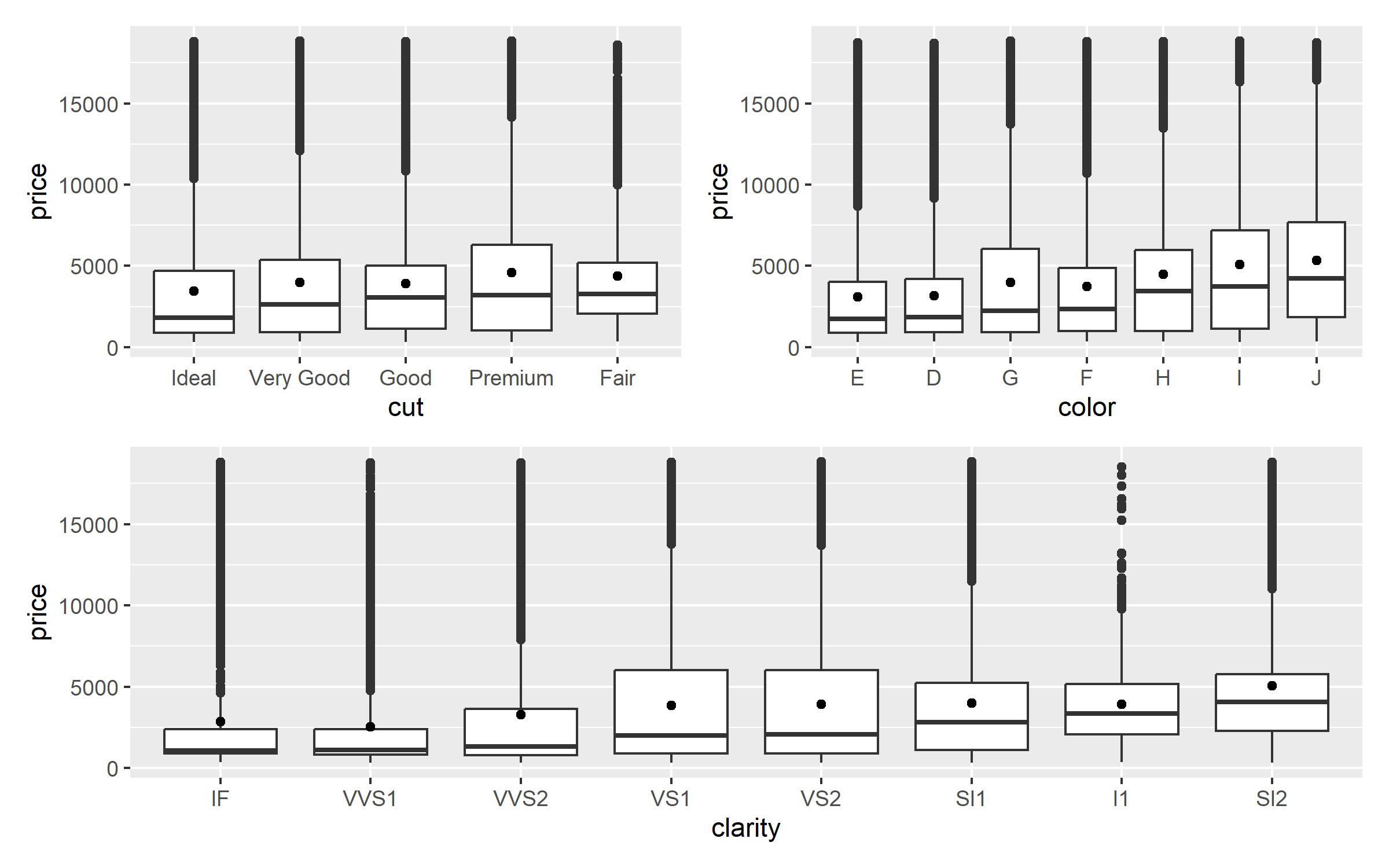geom_boxplot () + stat_summary (fun = mean, geom = "point" ) +